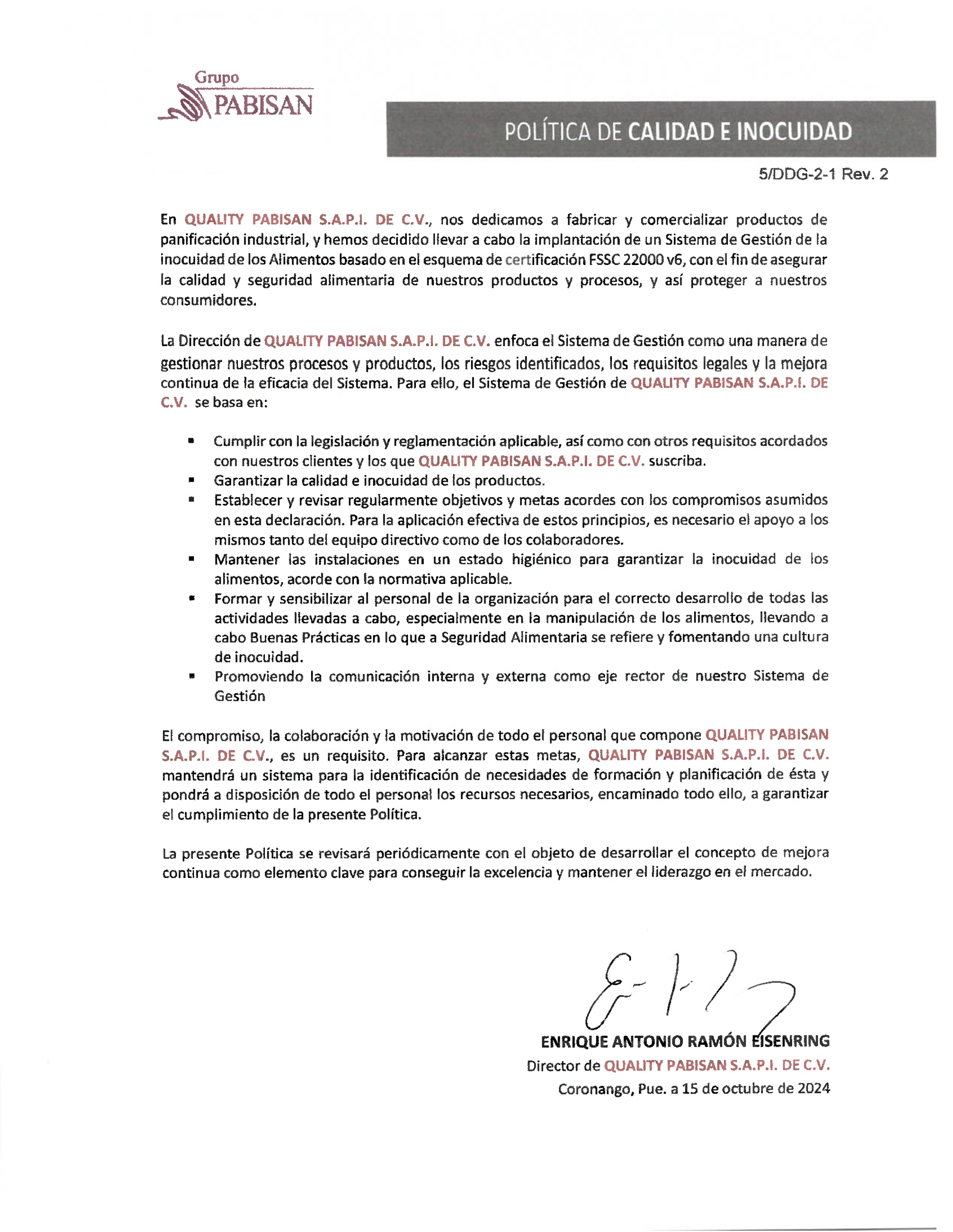 Grupo Pabisan nació en 1986 bajo la premisa de liderar la fabricación de pan industrial. Contamos con un equipo de especialistas, instalaciones adecuadas con la última tecnología y estándares de calidad que nos permiten entregar los mejores productos a nuestros clientes.